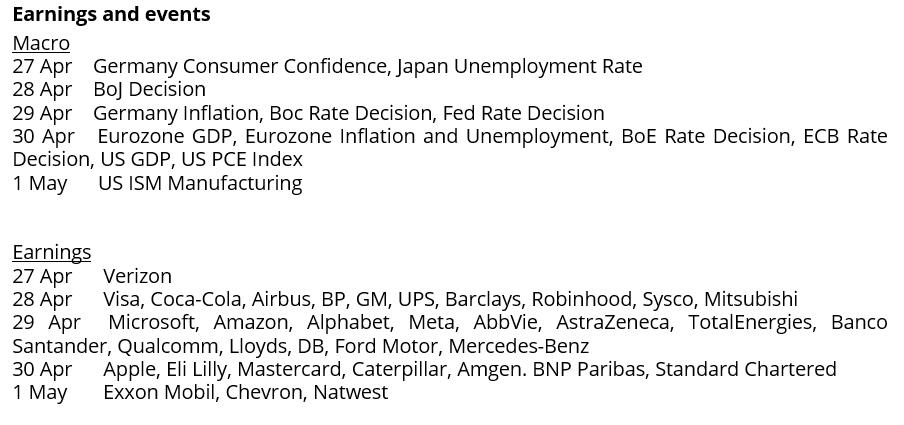 Regardless of how and when the Iran conflict is resolved, all eyes this week are on Big Tech earnings. Alphabet, Amazon, Meta and Microsoft (Wednesday) and Apple (Thursday) will report their results, it is the ultimate stress test. Together, these five companies account for about a quarter of the S&P 500’s market capitalization. What matters most in these results is the capex outlook, commentary on AI monetization and margin development. Operating costs are the silent margin killer of the AI era. Ultimately, it comes down to pricing power, whether rising costs can be passed on to customers. The technical outlook for Meta and Alphabet is as follows: