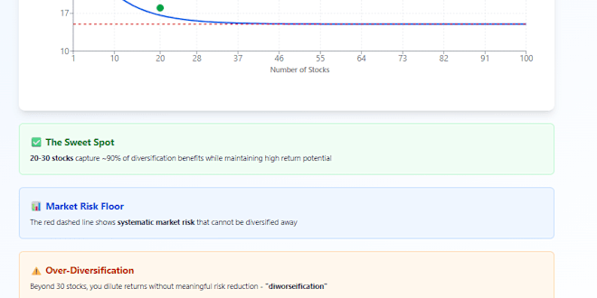 Research shows diversification benefits peak around 20 stocks. Beyond that, you're... Show More