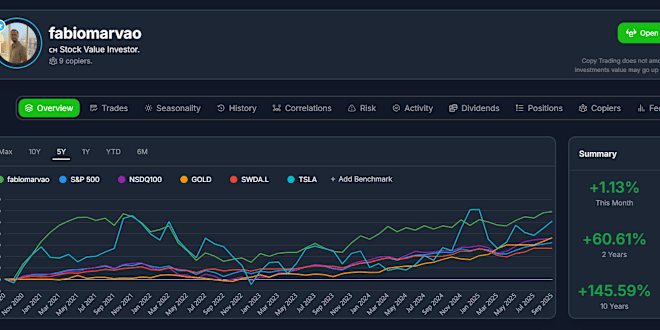 🌍 Invest Smart. Grow Steady. Copy Me on eToro – Let’s Build Wealth Together! Hi! I’m a long-term value stock investor with a clear mission: πŸ‘‰ Consistent growth πŸ‘‰ Global diversification πŸ‘‰ Solid dividend income πŸ‘‰ Smart risk management With over 5 years of experience navigating the markets and a well-diversified... Show More