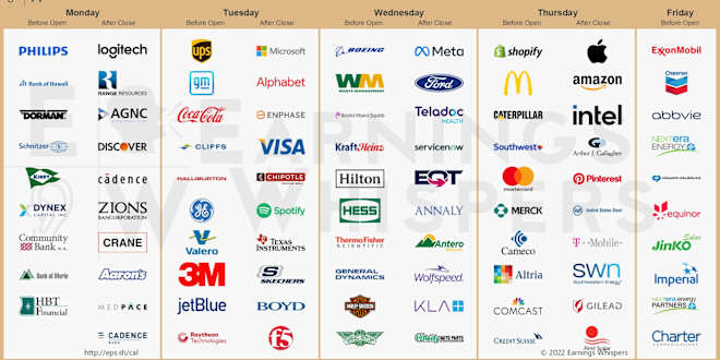 Earnings Releases October 24 - October 28 $UPS (United Parcel Service Inc) Tuesday 25 - Before Open $GM (General Motors Co) Tuesday 25 - Before Open $KO (Coca-Cola) Tuesday 25 - Before Open $MSFT (Microsoft) Tuesday 25 - After Close $GOOG (Alphabet) Tuesday 25 - After Close $V (Visa) Tuesday 25 - After... Show More