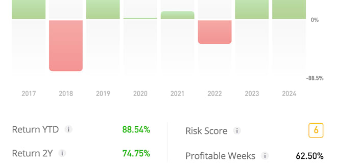 74% avg return over 2 years and 88% this year.