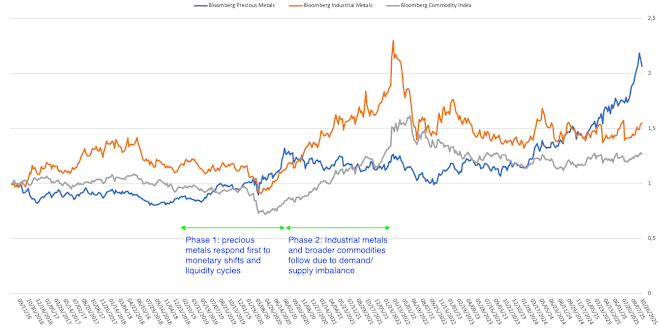 The recent breakout in metals suggests that commodities may be entering a new structural uptrend. As shown in the chart below, precious metals have led the move, historically anticipating broader price increases in industrial metals and commodities overall. This pattern reflects a familiar sequence: -... Show More