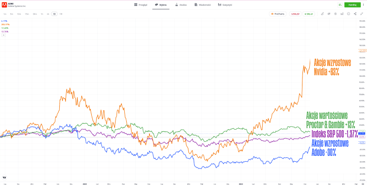 Na poniższym wykresie można zobaczyć względne wyniki czterech różnych aktywów w ciągu 24 miesięcy.