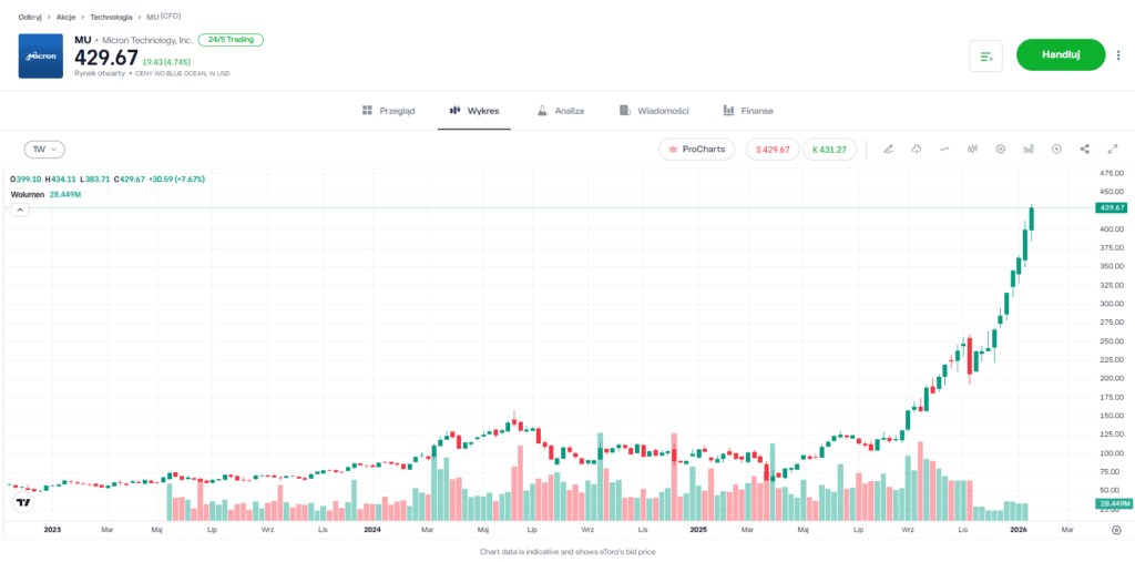 - Ryzyka obejmują cykliczny charakter rynku pamięci oraz potencjalną nadpodaż, jeśli konkurenci (Samsung i SK Hynix) zwiększą produkcję szybciej, niż rynek będzie w stanie ją przyjąć.