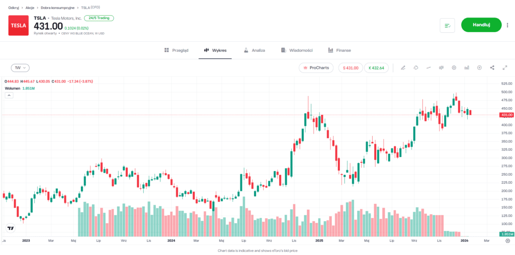 - W 2026 roku kluczowymi czynnikami wzrostu wyceny mogą być potencjalne wdrożenie Robotaxi oraz integracja humanoidalnego robota Optimus w fabrykach Tesli.