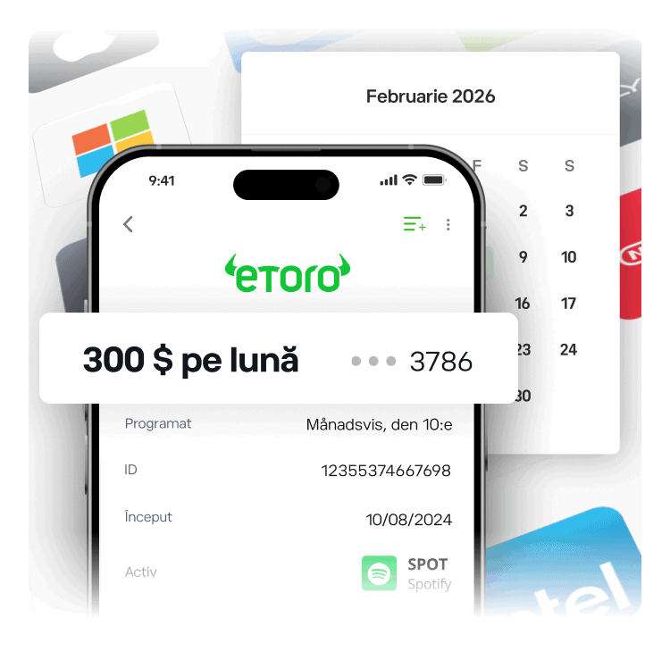 Tu alegi suma și data, iar eToro plasează un ordin de piață pentru tine în fiecare lună.