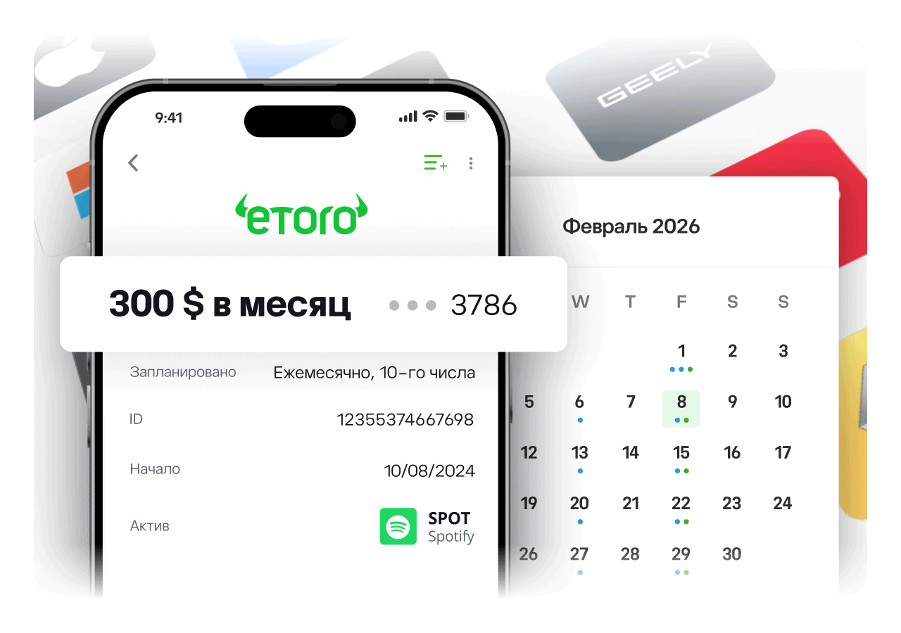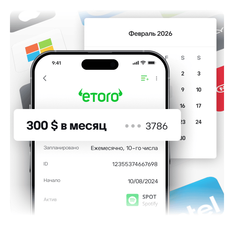 Вы выбираете сумму и дату, и eToro ежемесячно размещает для вас рыночный ордер.