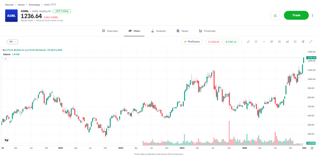 - ASML holds a near 100% market share in the high-end lithography space, creating a “structural moat” that competitors like Nikon or Canon have been unable to bridge.